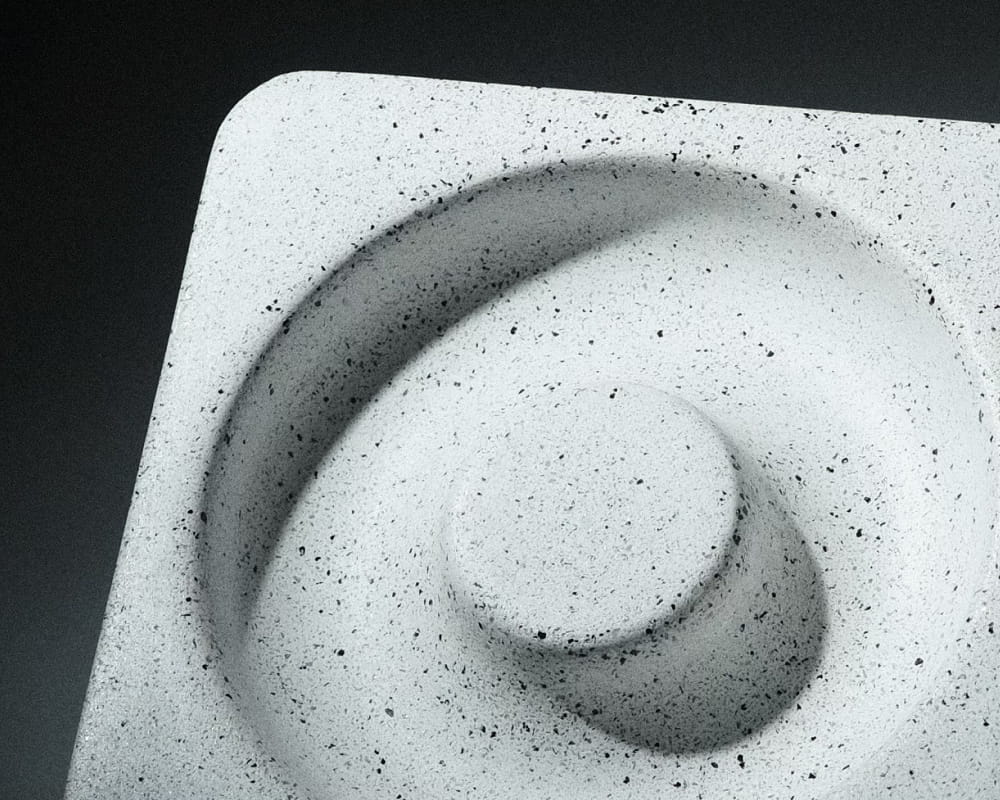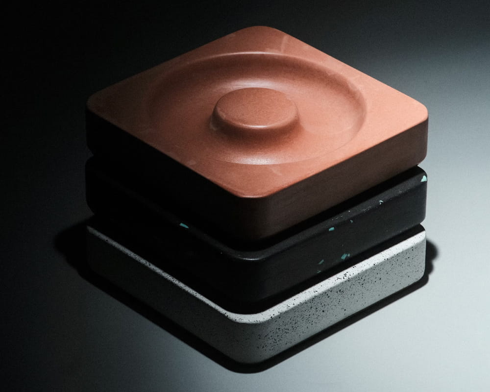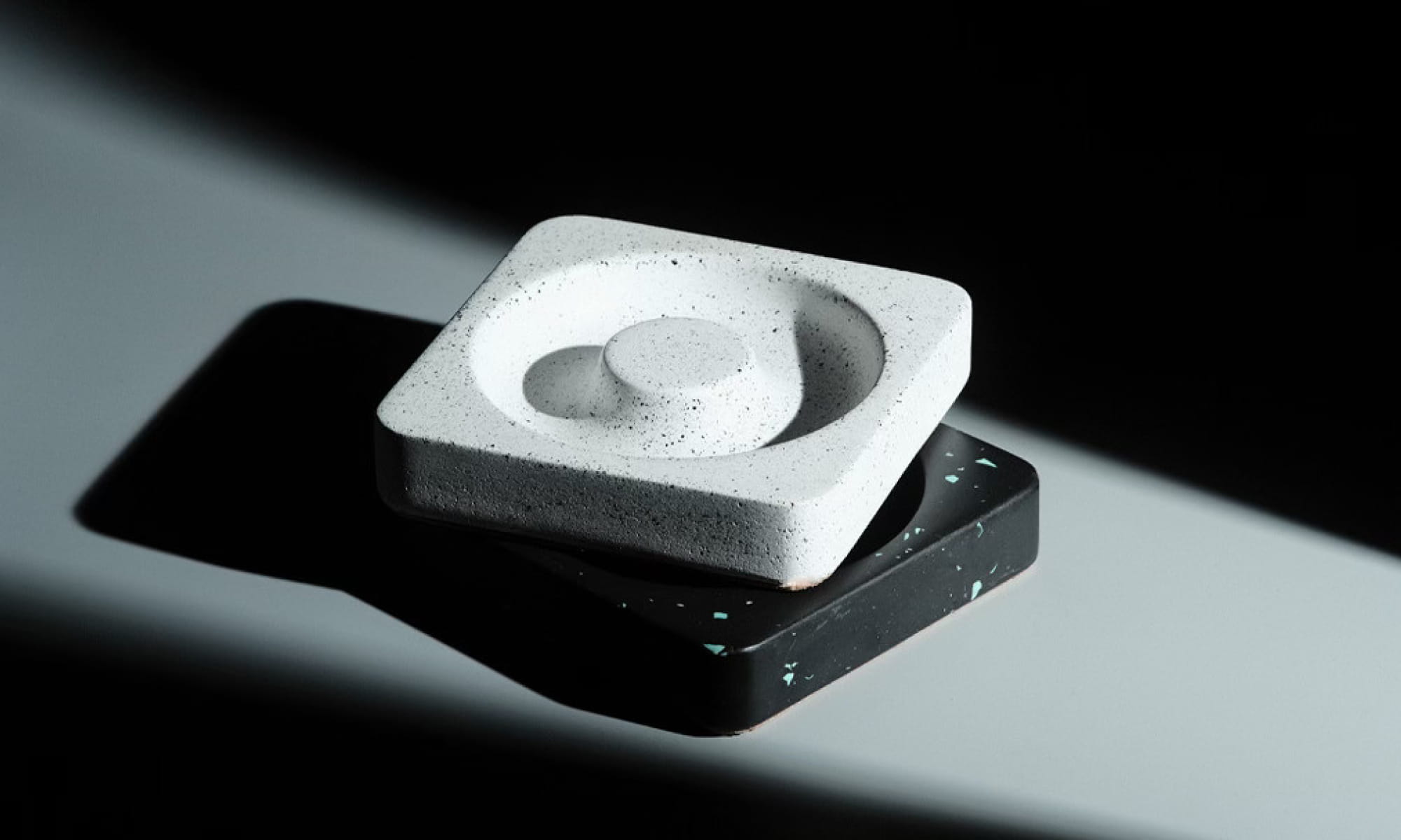 The design language of the Ash Orbit is defined by the striking interplay of light, shadow, and geometry. By utilizing raw materials such as speckled concrete and tinted terrazzo, each piece showcases unique textural variations and exudes an industrial, wabi-sabi charm. The central raised hub and the surrounding trough are precisely engineered to either catch ash or hold jewelry, while the stark, clean outer edges ground the form. This design is a testament to Kuro's ethos of creating minimalist objects that are visually striking both in isolation and during everyday use.