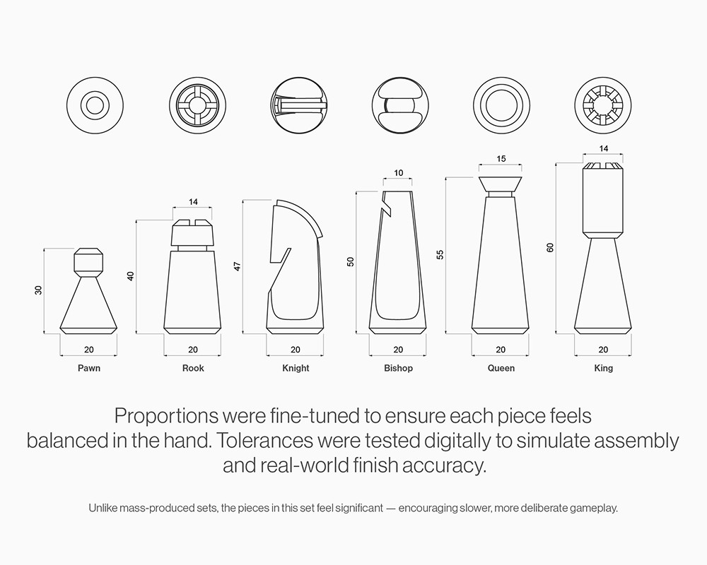 Transforming the chess experience from a mental game to a sensory interaction, Ragalia reimagines tactile presence through weight, curves, and materiality.